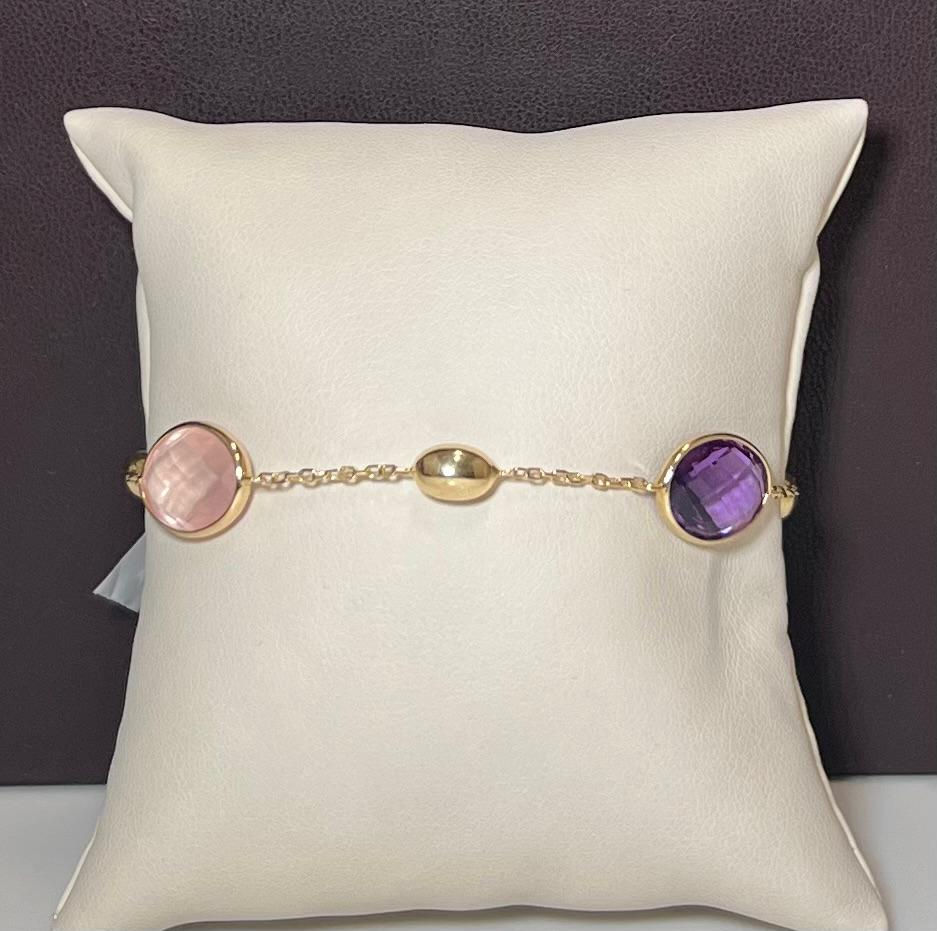 14K Yellow Gold Natural Amethyst & Rose Quartz Chain Bracelet