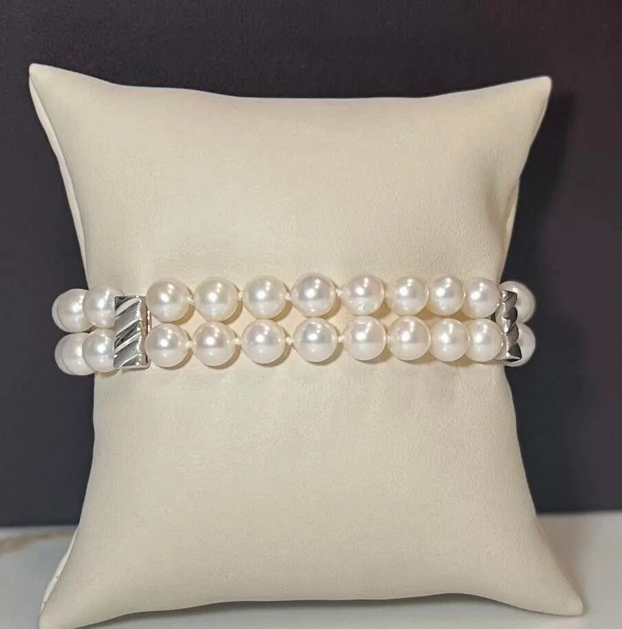 14K White Gold Natural Fine Fresh Water Pearl Bracelet