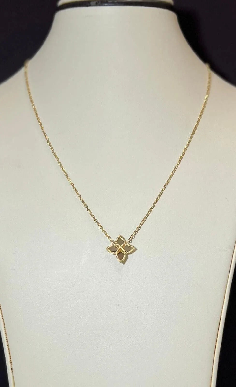 14K Yellow Gold and Black Onyx Flower Chain Necklace